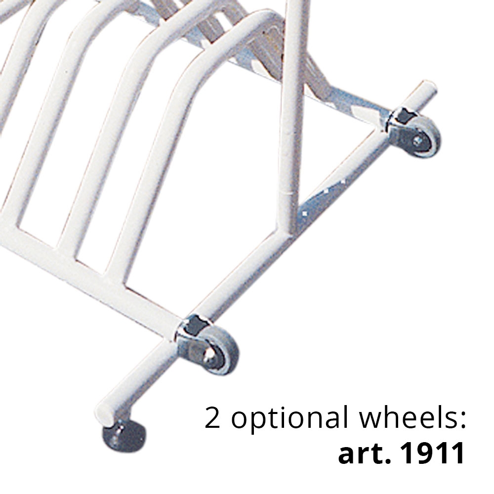 25 mm stålrør, fosfateret og polyesterlakeret. Kan også leveres med to 3" hjul (art.1911).