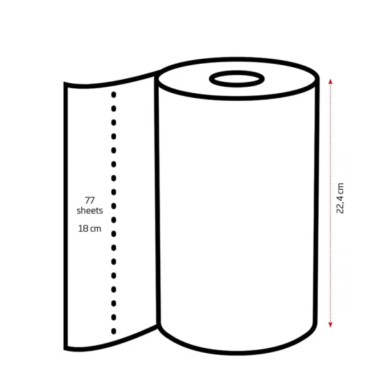 Med dens 3-lags design og ekstra længde på 13,86 meter kan du være sikker på, at denne køkkenrulle holder længe og hjælper dig med at klare enhver opgave. Den er også 22,4 cm bred, hvilket gør den ideel til at tørre op i en fart. Den er lavet af 100% nyfiber, hvilket sikrer en blød og absorberende oplevelse hver gang.